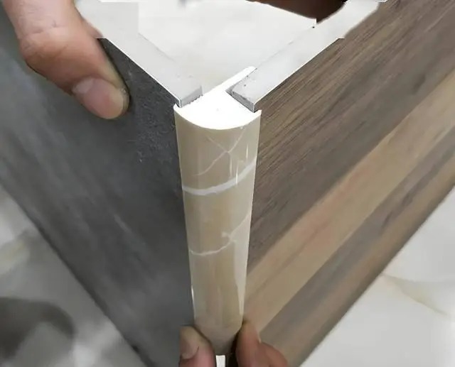 第一,看瓷砖。用大板砖或岩板,必须做海棠角。阳角条会完全破坏质感。用便宜的瓷片或半瓷砖,胚体太脆,做海棠角容易崩边。这时候选阳角条更实际。