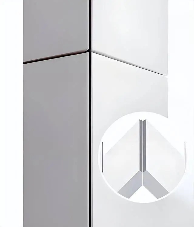 做法不复杂。把两块瓷砖的侧面各切掉一个45度斜角。拼起来以后,正面看不到瓷砖胚体。缝隙只有1到3毫米。用美缝剂一填,墙角就是一条直线。整体感很强。现代简约、奶油风、原木风都能搭。这是目前公认最显档次的做法。