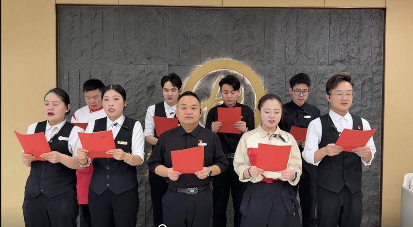 在海底捞合肥某店,包括党员在内的员工们组成参赛队伍,利用休息时间集中练习。从反复打磨旋律、精准拿捏每一处转合,到逐字逐句咀嚼歌词、体悟其中深沉的家国情怀,每一次排练都是一场直击心灵的精神洗礼,更是一次拉近距离、增进情谊的暖心互动。